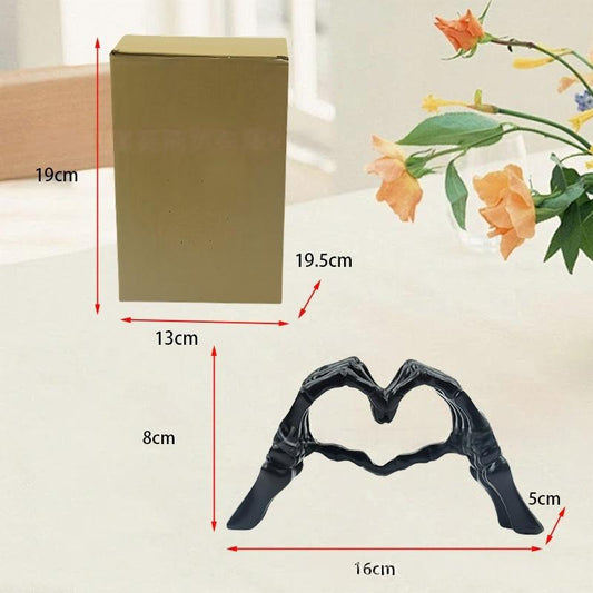 Black Gothic Skeleton Hands Heart Sculpture - Macabre Love Figurine for Home & Halloween Decor